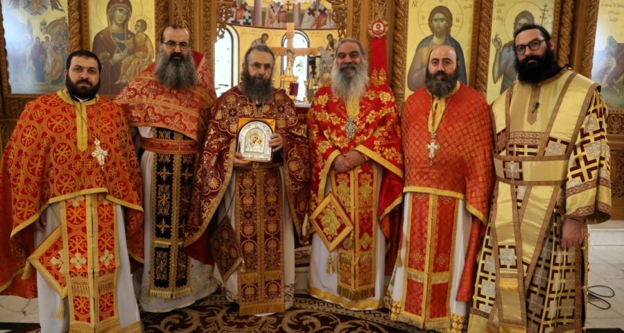 في نهايةِ الخدمةِ رحّبَ الأرشمندريت فينيذكتوس الرّئيسُ الرّوحيّ لكنيسةِ الصّعودِ الإلهي بالأرشمندريت غريغوريوس ومشاركتِهِ الخدمةَ الإلهيّةَ مقدِّمًا له باسم الآباءِ الكهنةِ ولجانِ الكنيسةِ والرّعيّةِ صليبًا مقدَّسًا وأيقونةً لوالدةِ الإلهِ عربونَ محبّةٍ وتقدير .