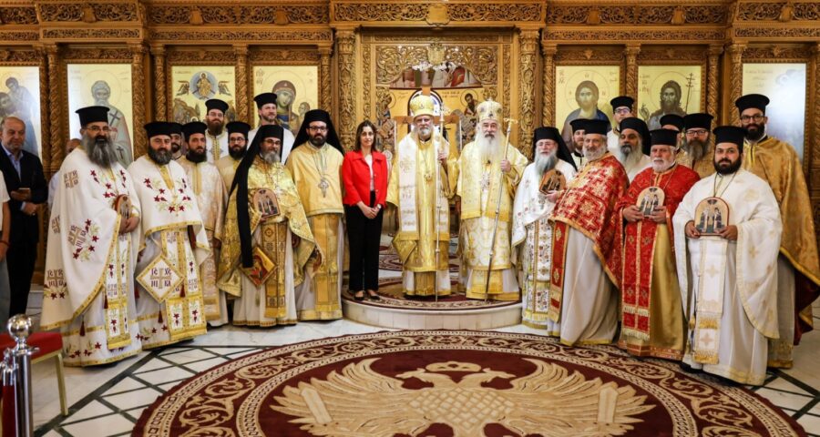 قبل عظةِ الإنجيلِ رحّبَ المطران خريستوفوروس بسيادة المتروبوليت سابا متروبوليت أمريكا باسم صاحبِ الغبطةِ كيريوس كيريوس ثيوفيلوس الثّالث بطريركِ المدينةِ المقدّسةِ والوفدِ المرافقِ في بلدِهم الثّاني الأردن ، مؤكّدًا له من خلال خدمةِ القدّاس الإلهي المشترَكة على الوَحدةِ الكنسيّةِ بين الكرسيّ الأوروشليمي والأنطاكي بالمحبّةِ الأخويّةِ فنحن جسدُ المسيح الواحد ،
