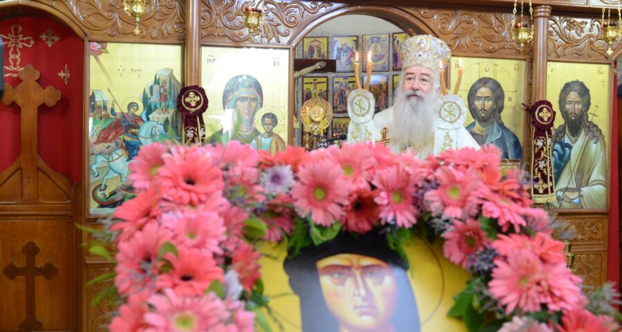 صورٌ من خدمةِ القدّاسِ الإلهيّ ( اللّيتورجيّا الإلهيّة ) الذي ترأسَهُ سيادةُ المطرانِ خريستوفوروس في كنيسةِ القدّيس جيورجيوس / عنجرة ، بمناسبة عيد القدّيسة مريمَ المصريّة شفيعة لجنة السيدات هناك . قالَ سيادتُه في عظةِ الإنجيلِ أنَّنا في الأسبوعِ الخامسِ من الصّوم ، واليومَ يُظهِرُ لنا الإنجيلُ أنّ التّلاميذَ يهتمّون بالبُعدِ الدّنيويّ الظّاهر وتحريرِ اليهودِ من نيرِ الرّومان ، دونَ الاهتمامِ من تحريرِهِ إيّانا من عبوديّةِ إبليس والخطيئة ، ومن هنا يعلّمنا السّيّدُ المسيحُ أن نهتمَّ بتسليمِ ذواتِنا لله بكلِّ ثقةٍ وتواضع ، وهو بدورهِ يعرفُ صالِحَنا الرّوحيِّ المؤدّي بنا الى الملكوتِ السّماويّ وليسَ بحسبِ البُعِد الأرضيّ الدّنيويّ ، مع المسيحِ سنتحرّرُ من قيودِ الخطيئة ، مثلَ القدّيسةِ البارّةِ مريمَ المصريّةِ التي تحرّرَت من عبوديّةِ إبليس وقيودِ الخطيئةِ بالتّوبةِ الصّادقة .