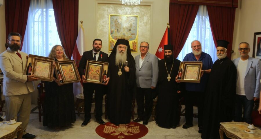 ضمن زيارةِ أخويّةِ القدّيسِ جيورجيوس إلى الأردنّ والكنائسِ الأرثوذكسيّةِ في مختلف محافظاتِ المملكة. قامت الأخويّةُ بزيارةِ دارِ المطرانيّةِ ولقاءِ صاحبِ السّيادة المطران خريستوفوروس مطرانِ الأردنّ للرّومِ الأرثوذكس حيث قدّمتِ الأخويّةُ رسالةَ شكرٍ ومحبّةٍ لسيادتِهِ، تعبيرًا عن امتنانِهم لحسنِ الاستقبالِ وكرَمِ الضّيافة. وتبادلَ الطّرفانِ الهدايا والصّورَ التّذكاريّةَ تخليدًا لهذه الزّيارةِ المبارَكة.