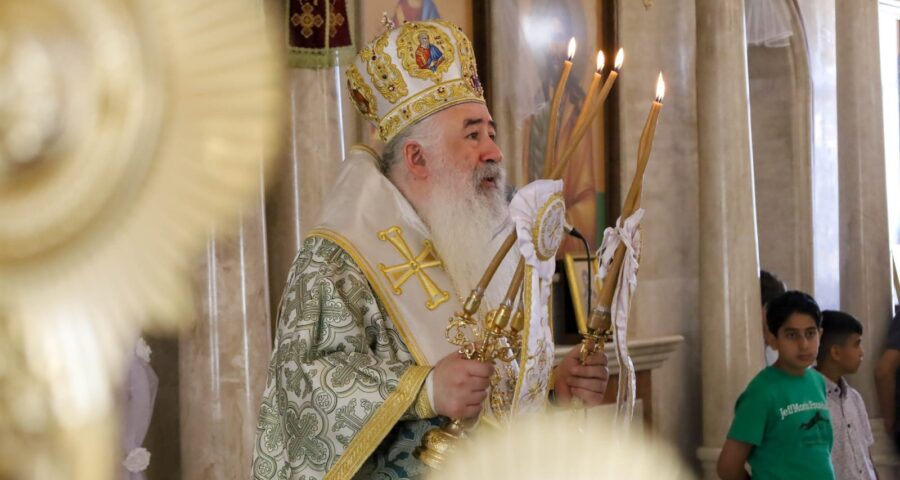في نهايةِ الخدمةِ عايد الإيكونوموس غريغوريوس سيادةَ المطران مرحِّبًا به وبجمع الإكليروسِ في عجلون بهذه المناسبة المقدّسةِ وعايدَ رعيّةَ الكنيسةِ ولجانِها وشبيبتِها ومدارسِ أحدِها وكشّافتِها.