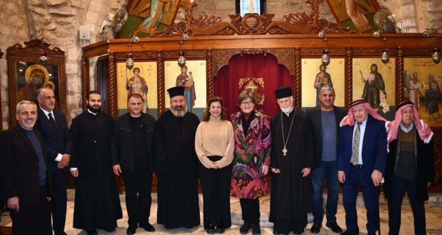 كان في استقبالِ سمو الأميرةِ والوفدِ المرافقِ قدس الإيكونوموس جبرائيل طعامنة والأب نكتاريوس حدّاد ولجنةُ الكنيسةِ وبعضٌ من رعيّتِها .