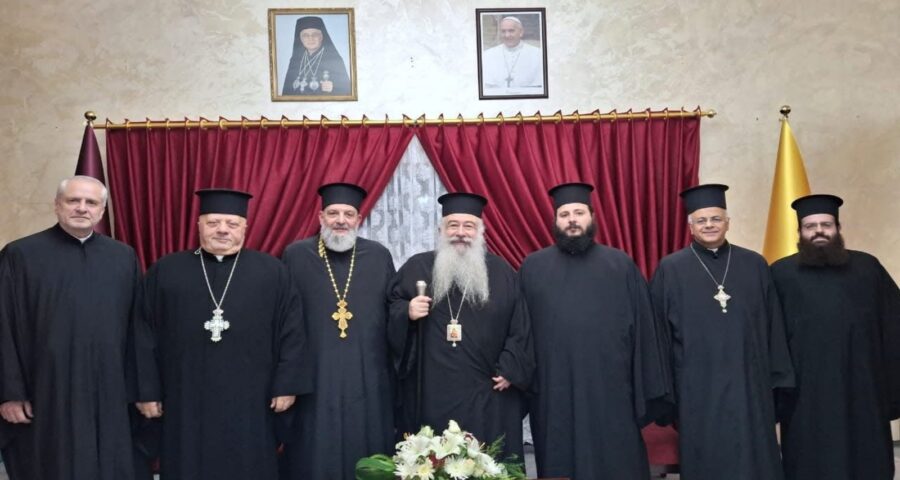 مطران الأردن للروم الأرثوذكس المدبر البطريركي للروم الكاثوليك قدس الأرشمندريت بول نزها في مطرانية الكاثوليك / أم السماق مساء أمس الخميس 5-12-2024 لتهنئته بتعيينه مدبراً لكنيسة الروم الكاثوليك في الأردن متمنياً له الصحة والعافية والعمل المثمر للكنيسة والوطن.