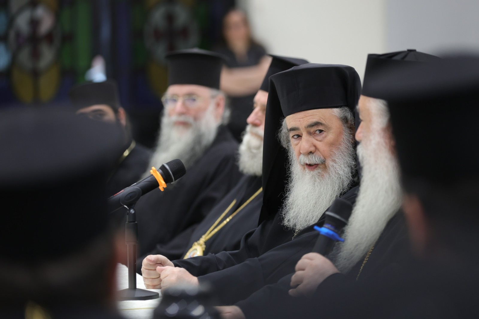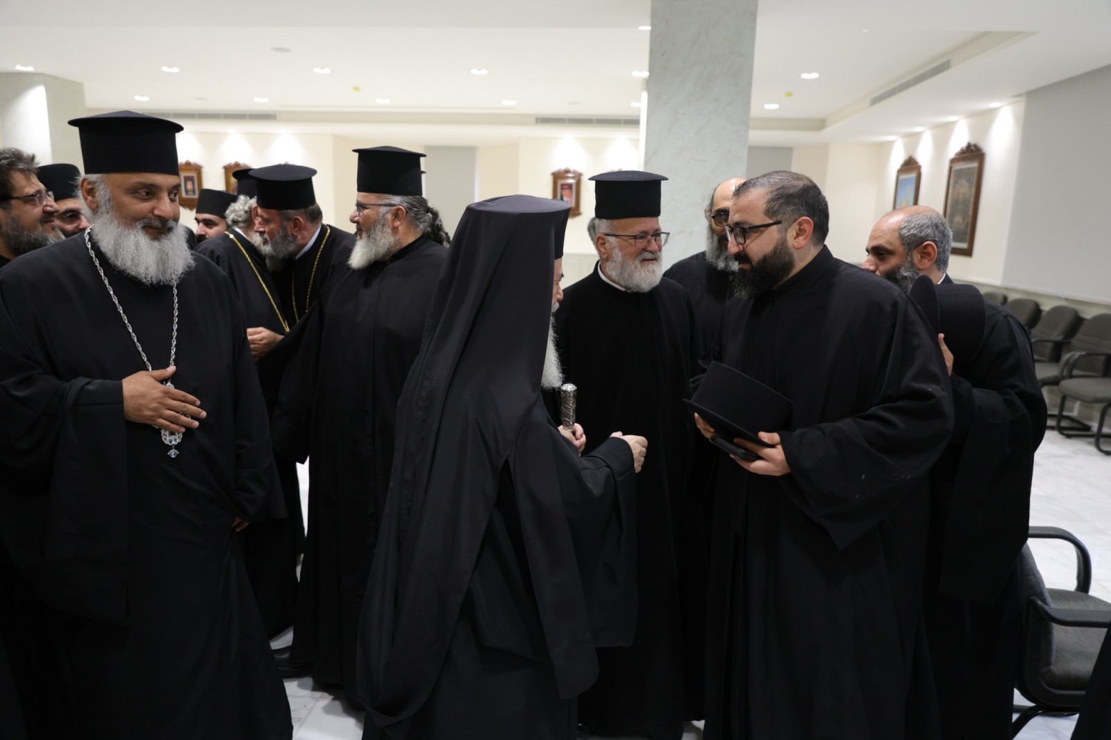 التقى غبطةُ البطريرك ثيوفيلوس الثّالث البارحة السبت في قاعة كاتدرائيّة دخول السّيّد إلى الهيكل كافّة الآباء الكهنة الأجلاء رعاة كنائِسنا في كافّة أنحاء المملكة وذلك بعد عودتِه من دير سيناء حيث قام بتنصيب سيادةِ المطران سيمون رئيسًا لدير القدّيسة كاترينا .