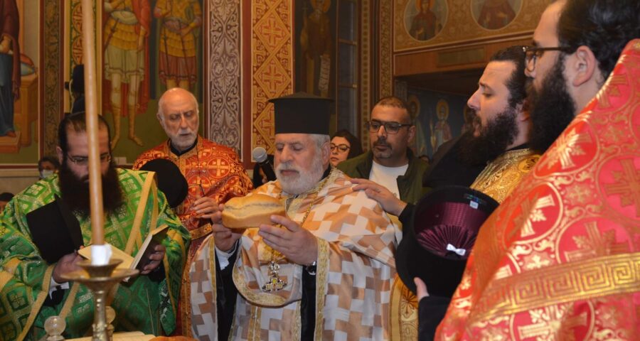 صورٌ من خدمةِ الغروبِ وكسرِ الخمسِ خبزاتٍ بمناسبةِ تذكارِ القدّيس الشّهيدِ في الكهنةِ خرالمبوس التي أقيمت مساءَ الخميسِ في كنيسةِ ميلادِ السّيّدة العذراء – جبلِ التّاج، والتي تحتضنُ رُفاتَ القدّيس. ترأسَ الخدمةَ قدسُ الأرشمندريت خريستوفوروس حدّاد وعاونهُ الإيكونوموس فرح حدّاد والأب الياس راعي الكنيسة والأب إغناطيوس خليفة ورئيسُ الشّمامسة سلفستروس. في نهايةِ الخدمةِ عايدَ الأرشمندريت خريستوفوروس الإيكونوموس فرح بعيد شفيعهِ القدّيس خرالمبوس (فرح) وأهداهُ صليبًا بالمناسبةِ باسمِ صاحبِ السّيّادةِ المطران خريستوفوروس وباسمِ الرّعيّةِ التي خدَمَها في فترةٍ سابقة. كذلك، وباسمِ صاحبِ السّيّادةِ والرّعيّةِ، قدّمَ للقندلفت أندلي الذي يخدمُ الكنيسةَ والرّعيّةَ بكلِّ أمانةٍ وإخلاصٍ منذُ أكثرَ من 35 عامًا، صليبًا يحتوي ذخائرَ القدّيس خرالمبوس. داعيًا لهما بإكمالِ سنواتِ خدمتِهما بالصّحّةِ والتّوفيق والبركة. بعد الخدمةِ اجتمعتِ الرّعيّةُ مع الآباء في صالونِ الكنيسة.