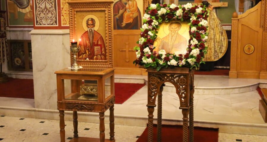 في نهايةِ الخدمةِ عايدَ الأرشمندريت أثناسيوس باسمِ صاحبِ السّيّادةِ المطران خريستوفوروس راعي الكنيسةِ وأبناءَ الرّعيّةِ والإيكونوموس فرح بعيد شفيعهِم القدّيس خرالمبوس ، متمنّيًا لهم صومًا مباركًا وقيامةً مجيدة ، وذكرَ كيف شهِدَ القدّيس خرالمبوس للرّبِّ يسوعَ ورفضَ إنكارَه قائلا كيف أُنكرُ إلهي الذي لم يُنكرني أبدًا بل أحبّني ومات لأجلي ، داعيًا إيّانا للّتمسُّكِ بإيماننا القويم الرّأي الذي دافع عنه القدّيسونَ عبر العصورِ بدمائِهم وأرواحهم ، وأن نجاهدَ في حياة التّوبةِ والصّلاةِ والصّومِ ، وألا نذوبَ في هرطقاتِ العصرِ والعولمة .