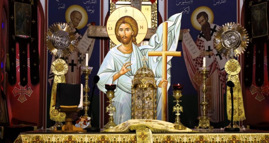 صورٌ من خدمةِ القدّاسِ الإلهيّ ( اللّيتورجيّا الإلهيّة ) الذي أقامه الإيكونوموس بندلايمون مشاركة الإيكونوموس ايرينيوس سالم بحضورِ أبناءِ الرّعيّة في كاتدرائيّةِ البشارة – العبدلي بمناسبةِ تذكارِ الشّهداءِ بطرس وأندراوس ورفقتهما .