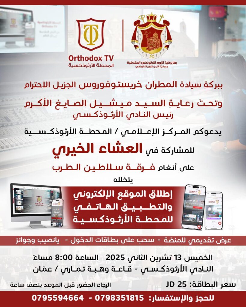 ندعوكم للمشاركة في العشاء الخيري وإطلاق الموقع الإلكتروني والتطبيق الهاتفي للمحطة الأرثوذكسية