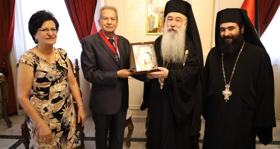 قلد صاحبُ السّيادةِ المطران خريستوفوروس ببركةِ أبينا صاحبِ الغبطةِ البطريرك ثيوفيلوس الثّالثِ بطريركِ المدينةِ المقدَّسةِ وبقرارٍ من المجمعِ المقدّسِ وِسامِ صليبِ القبرِ المقدَّسِ للسّيّدِ وديع ميخائيل ناصر سعادة في دارِ المُطرانيَّة – عمّان.