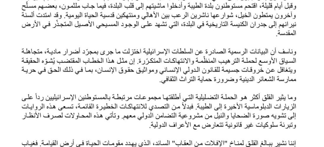 إلى سيادة رئيس أساقفة سيناء ولفران ورائيثوالمتروبوليت كيريلُّوس داميانوس المحترمبقلقٍ روحي واهتمامٍ أبوي، تلقّينا رسالتكم الموجّهة إلى بطريركية المدينة المقدّسة، والتي عبّرتم فيها عن رغبتكم بأن […]