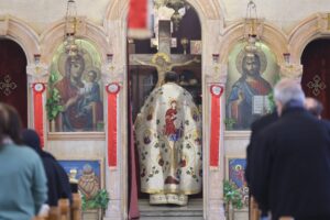 صورٌ من خدمةِ القدّاسِ الإلهيّ ( اللّيتورجيّا الإلهيّة ) الذي ترأسه الأرشمندريت أثناسيوس بمعاونةِ الأب فيلبّس راعي الكنيسةِ بحضورِ الرّعيّة في كنيسةِ دير القدّيس جيورجيوس –