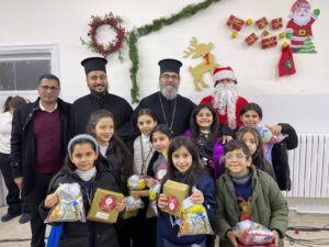سيادةُ المطران خريستوفوروس يعايدُ أبناءَ الرّعيّةِ في صافوط بعيد الميلاد المجيد بحسب التّقويمِ الغربي يرافقه الأرشمندريت خريستوفوروس الرّئيسُ الرّوحيّ لمحافظة البلقاء والايكونوموس بطرس راعي الكنيسة .